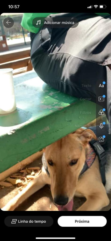 - No canto inferior esquerdo há um preview da sua galeria de fotos e a palavra “Adicionar”, clique nela e escolha o conteúdo que quer usar para criar seu vídeo curto;